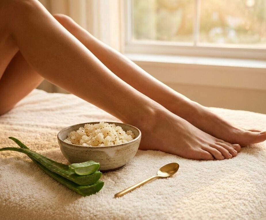 Entdecke das Geheimnis für seidig glatte Beine. Vom Kaffee-Peeling bis zum Professional Spa-Ritual mit Aloe Vera. Dein Guide für strahlende Körperhaut.
